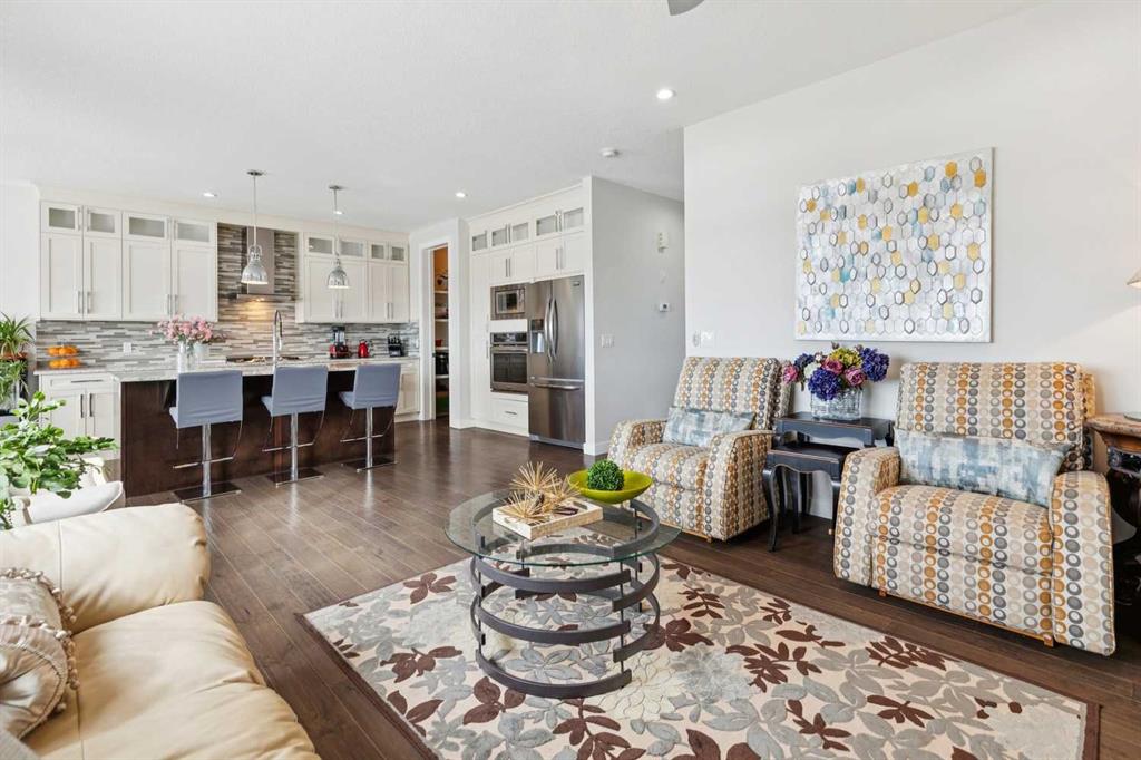 Boasting 3,558 sq ft of developed living space (2,559 sq ft above grade), this executive-level residence offers uninterrupted SW views across the expansive Cranston Escarpment green space toward the breathtaking Canadian Rockies. With its coveted SW exposure, the home is drenched in natural light throughout the day, creating a warm & inviting atmosphere all day long. A dramatic two-storey vaulted ceiling welcomes you into the highly functional floor plan. Designed with entertaining in mind, the open-concept main floor showcases stunning views from every angle. The living room is anchored by a beautiful gas fireplace with custom built-ins, creating a refined & comfortable gathering space. The chef-inspired kitchen features a gas cooktop, built-in wall oven, & a substantial island offering generous prep space & seating for family/guests. The dining area sits adjacent to the kitchen, perfectly positioned to take in the impressive SW mountain views. Step out onto the spacious balcony to enjoy uninterrupted views & spectacular sunsets. The large mudroom & a walk-through pantry provide the utmost in convenience. A dedicated main floor den/office & a 2pc powder room complete the main. Upstairs, you’ll find three generously sized bedrooms. The primary retreat captures the same spectacular views & offers a large walk-in closet & a decadent 5-piece ensuite. One of the secondary bedrooms features a cheater door to the well appointed 4pc bathroom. A spacious bonus room is ideal for family movie nights & the upper laundry room includes additional storage & a utility sink. The fully developed walk-out lower level is filled with natural light, it truly doesn’t feel like a basement. This level includes a 2nd kitchen area, a 2nd washer & dryer, a 4th bedroom, & a large recreation space, making it ideal for extended family, teens, or multi-generational living. Step outside to the low-maintenance landscaping complete with a stone patio & walkway. The rear gate opens directly onto expansive green space & endless community pathways. The oversized double attached garage features over-height ceilings, offering an abundance of storage options & excellent flexibility for larger vehicles or additional shelving. With the completion of the new Ring Road, commuting around the city is convenient, & schools of all levels are just minutes away. The stunning SW exposure & panoramic mountain views must be experienced to be fully appreciated, watch the seasons change & enjoy the ever evolving beauty of the Rockies from all three levels of this exceptional home. Call for more information!